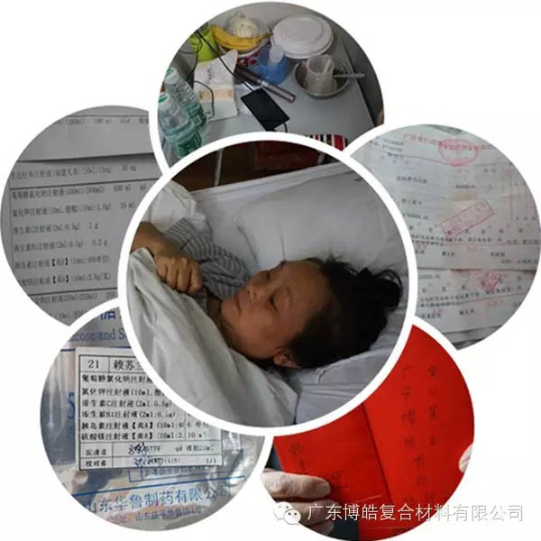 廣東博皓復合材料有限公司董事長經熟人轉述得知此事,不僅積極號召身邊人,發動小型的微信捐資活動,還從博皓愛心基金支出5000元人民幣,為這位生病的母親加油。當公司代表賴建明將5000元現金交到賴蘇蘭丈夫手中的時候,他稍稍有點哽咽。從當時這位憨厚的丈夫百味交集的表情中可以看出,作為家里的頂梁柱,不管平日多么堅強,當面對自己的親人被病魔纏身之時,又是多么的無助。看著這位被病痛折磨之下的45歲的媽媽,你很難相信她就是那個沒日沒夜加班只為讓家人可以稍微寬裕的母親,此刻,她無力的蜷縮在被窩里,嘴唇蒼白,臉色鐵青,雙眼無力的看著一滴滴藥水順著被針扎的凸起的血管流入身體,那就是她的希望,或許她和其他母親一樣,正在思考,大女兒是否穿暖,小女兒有無吃飽……..